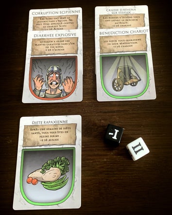Les jetons représentant les sesterces placés sur la case d'offrande vous permettent d'ajouter des cartes d'événement à votre main.