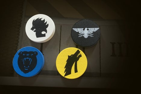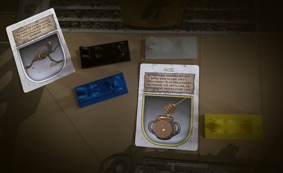 Différentes pièces viennent enrichir le jeu, tandis que les jetons à l’effigie des diverses familles permettent de suivre facilement le nombre de tours effectués au cours de la course.