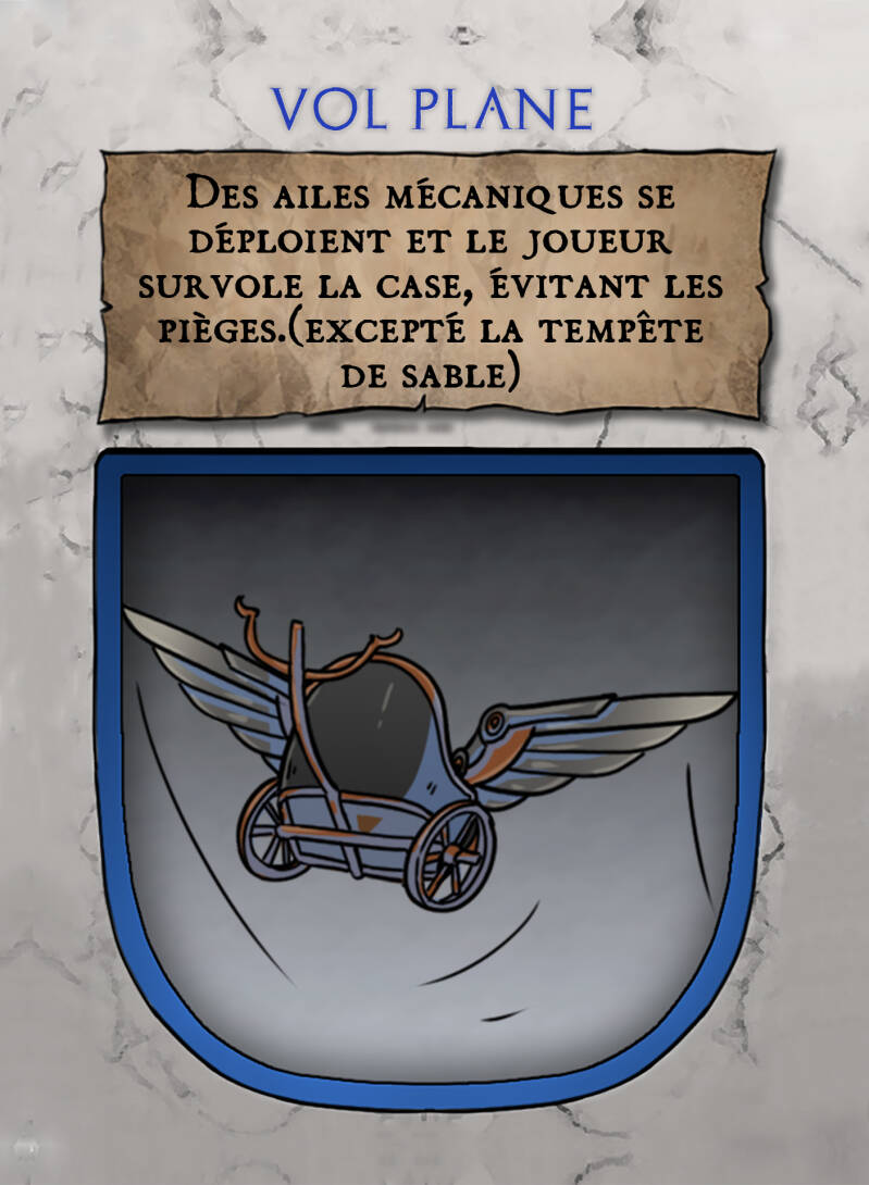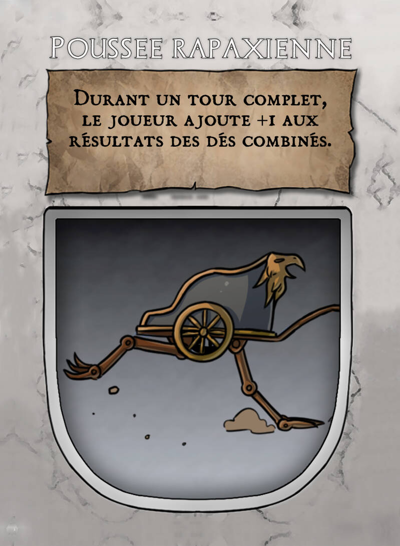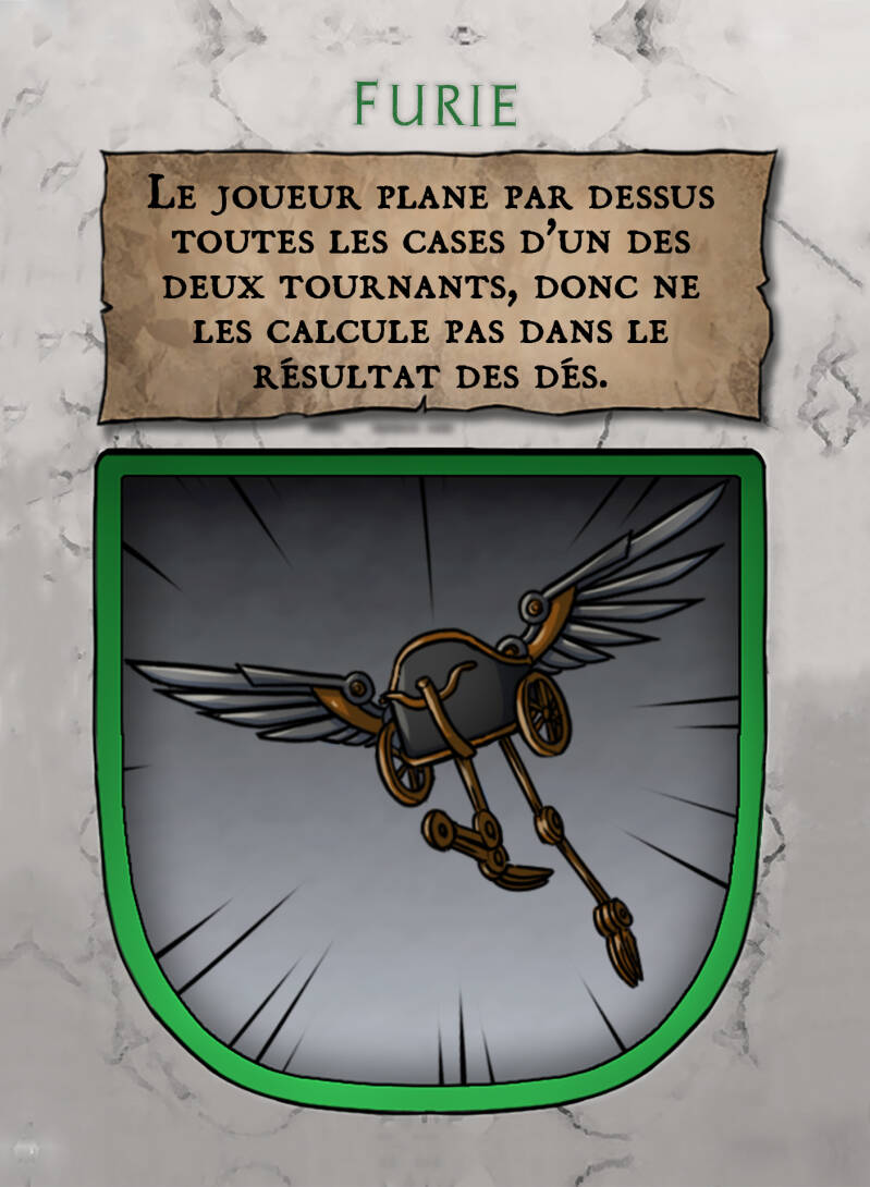 - Un mécanisme sophistiqué de ressorts et diverses composantes permet une avancée significative vers l'avant. Le joueur doit consacrer un tour de jeu pour activer ce mécanisme.