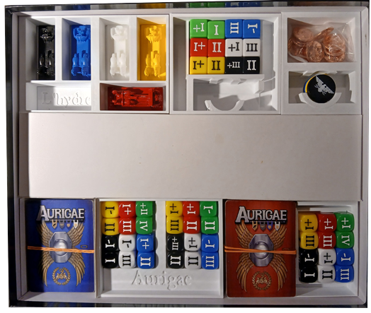 Storage space designed to fit the base game box. Sold in sets of five pieces.